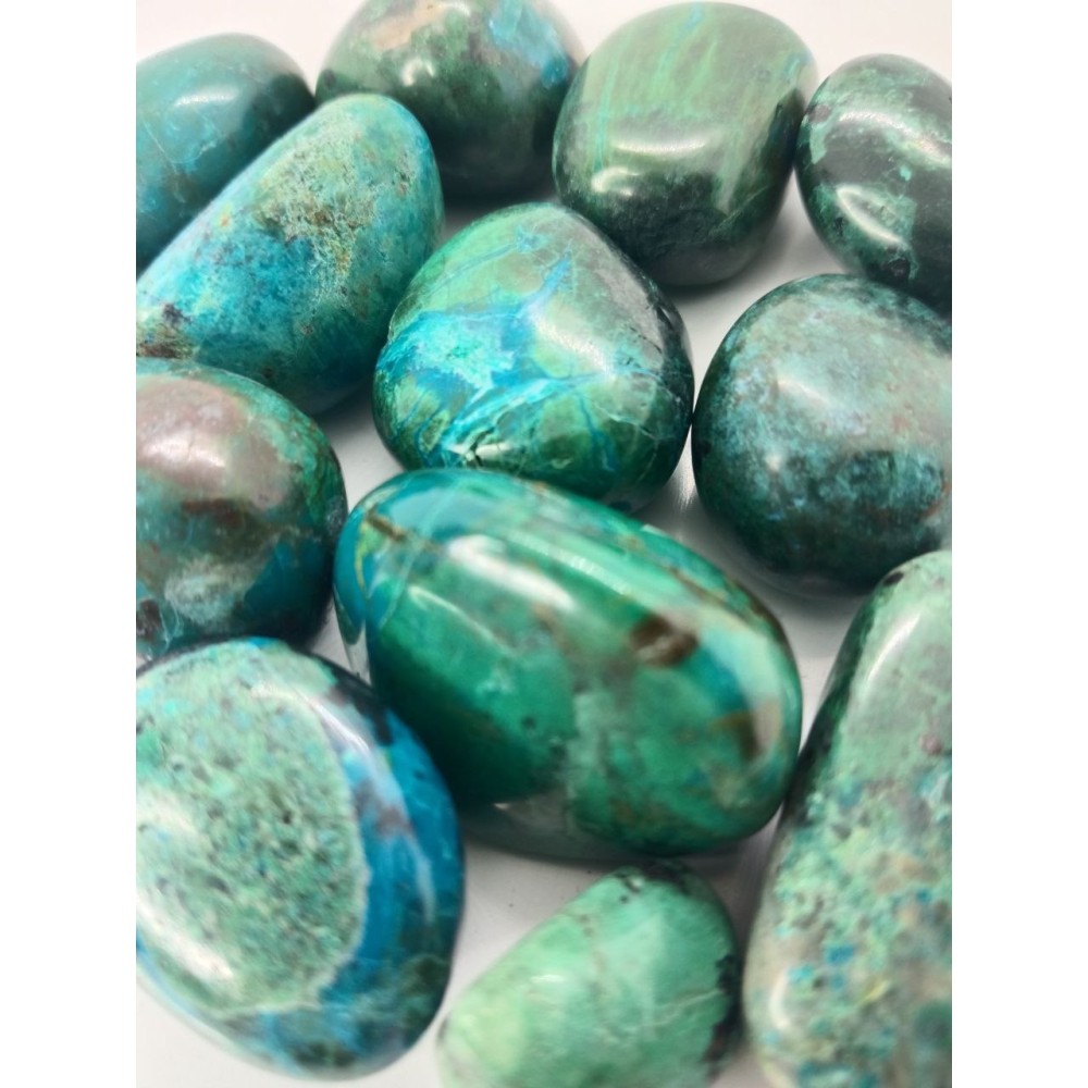 Crisocolla burattata , provenienza Perù, misura 3/3.5cm - quantità per sacchetto circa 10/15 pezzi (variabile a seconda delle grandezze).